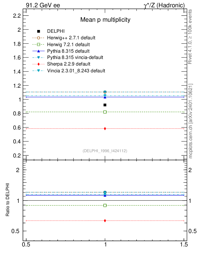 ee : γ*/Z (hadronic) : Identified Particles : p multiplicity