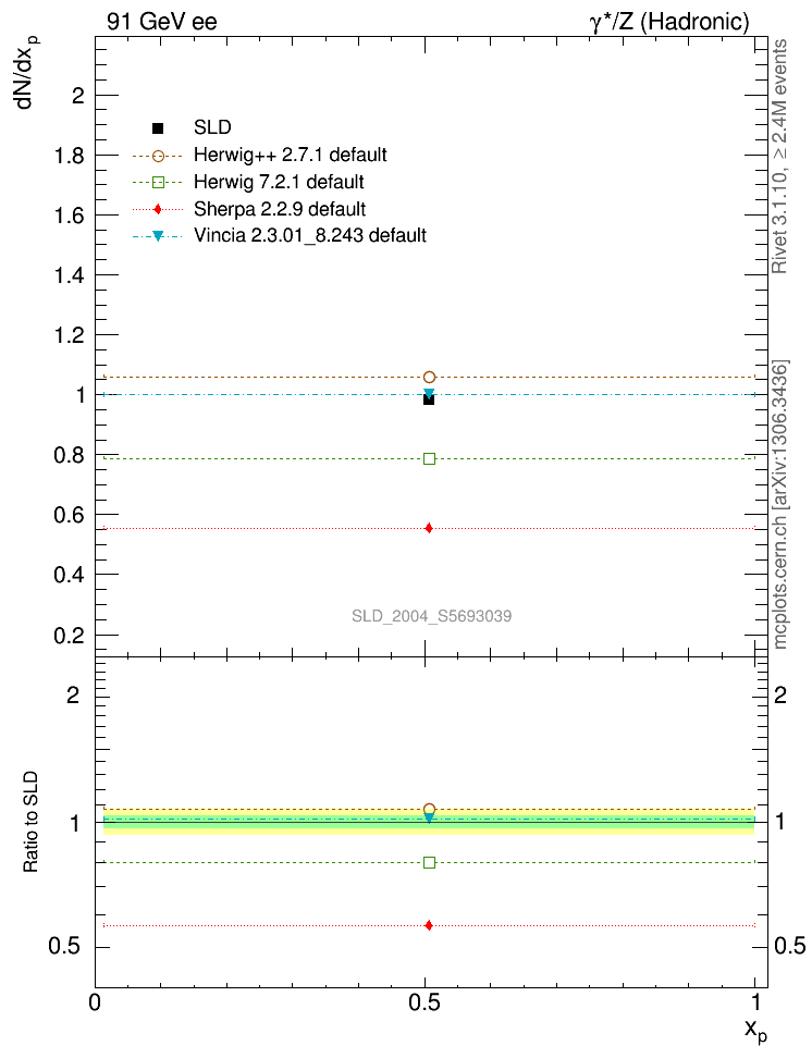 ee : γ*/Z (hadronic) : Identified Particles : p multiplicity