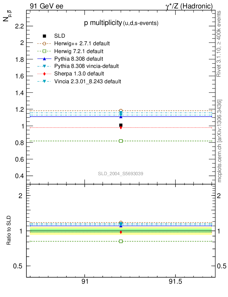 ee : γ*/Z (hadronic) : Identified Particles : p multiplicity