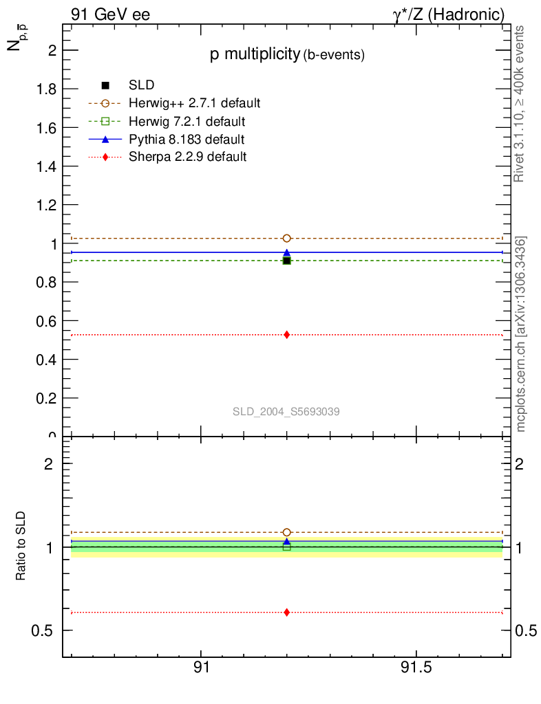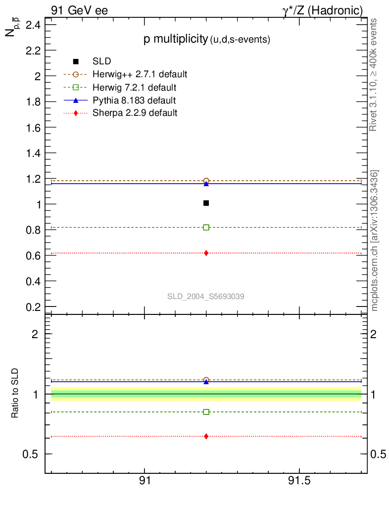 ee : γ*/Z (hadronic) : Identified Particles : p multiplicity