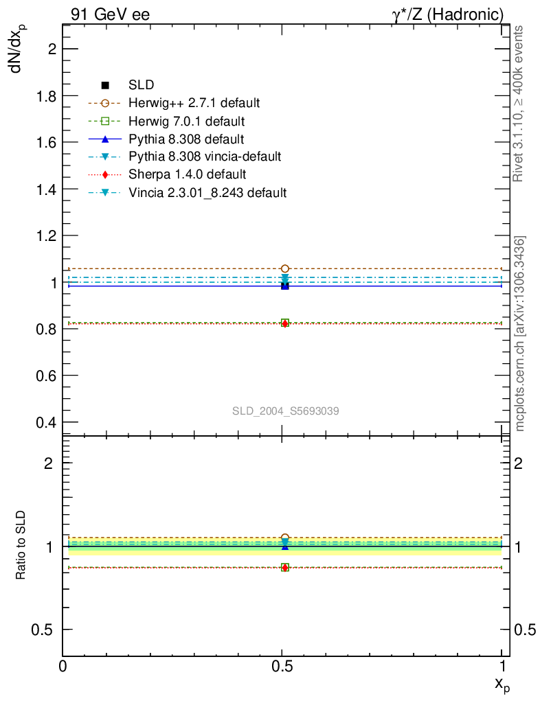 ee : γ*/Z (hadronic) : Identified Particles : p multiplicity
