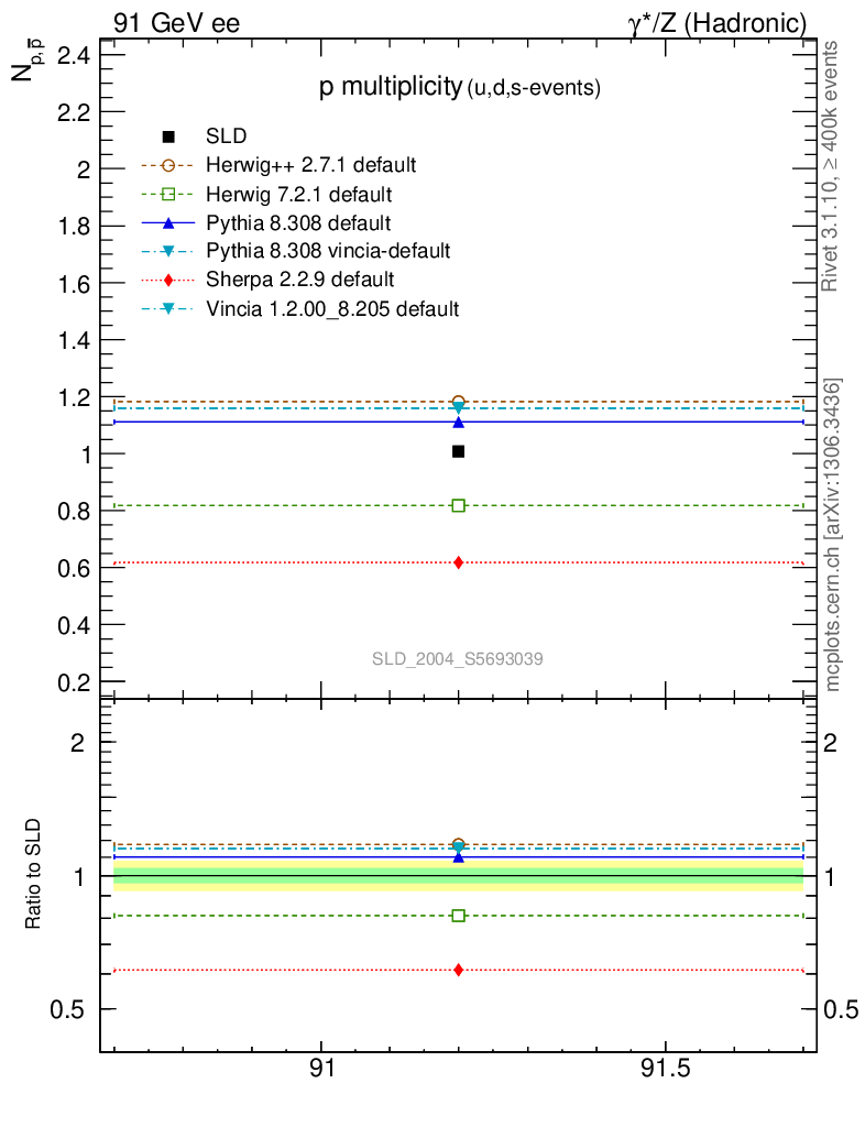 ee : γ*/Z (hadronic) : Identified Particles : p multiplicity