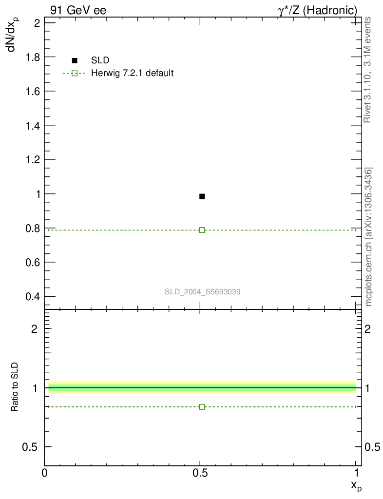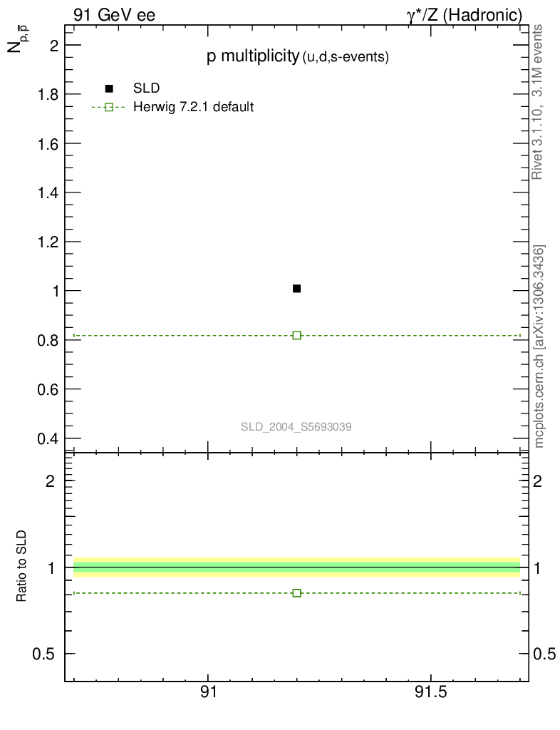 ee : γ*/Z (hadronic) : Identified Particles : p multiplicity