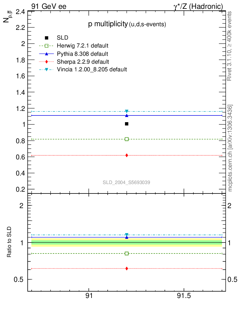 ee : γ*/Z (hadronic) : Identified Particles : p multiplicity