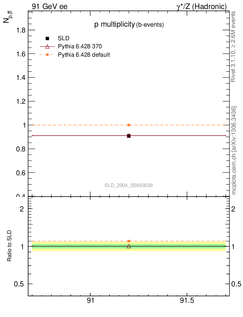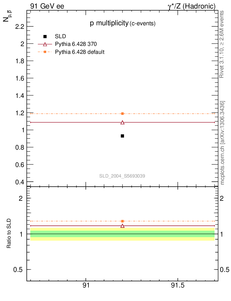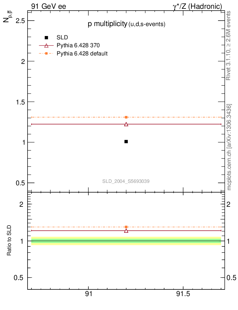 ee : γ*/Z (hadronic) : Identified Particles : p multiplicity