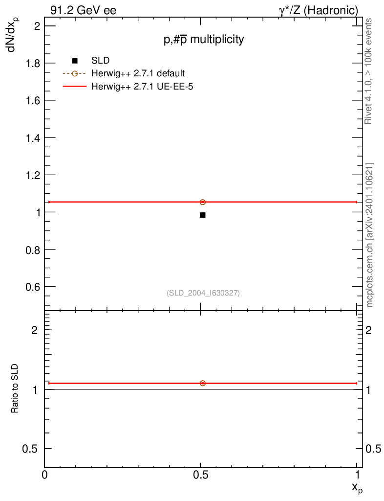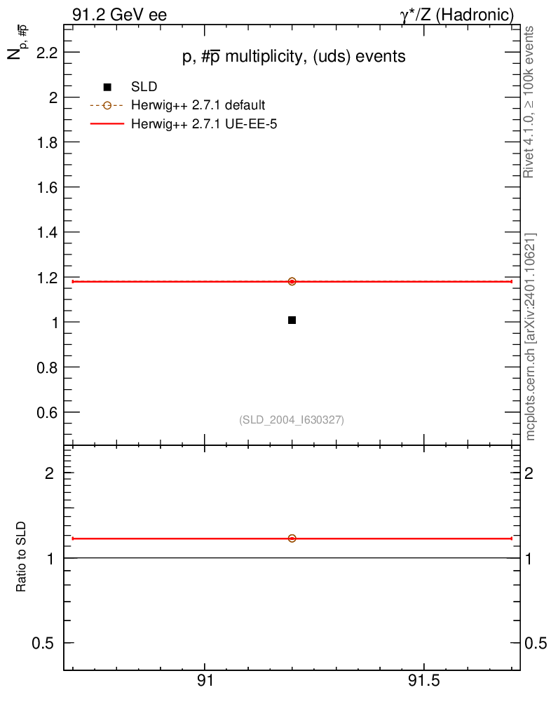 ee : γ*/Z (hadronic) : Identified Particles : p multiplicity