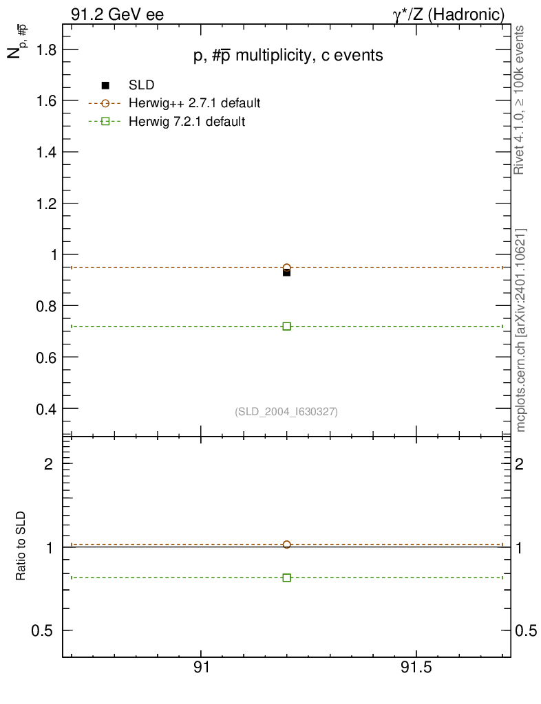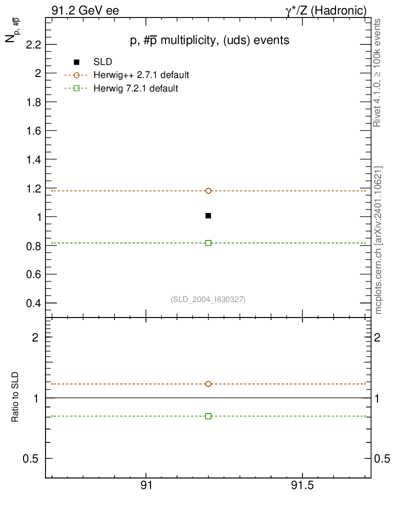 ee : γ*/Z (hadronic) : Identified Particles : p multiplicity