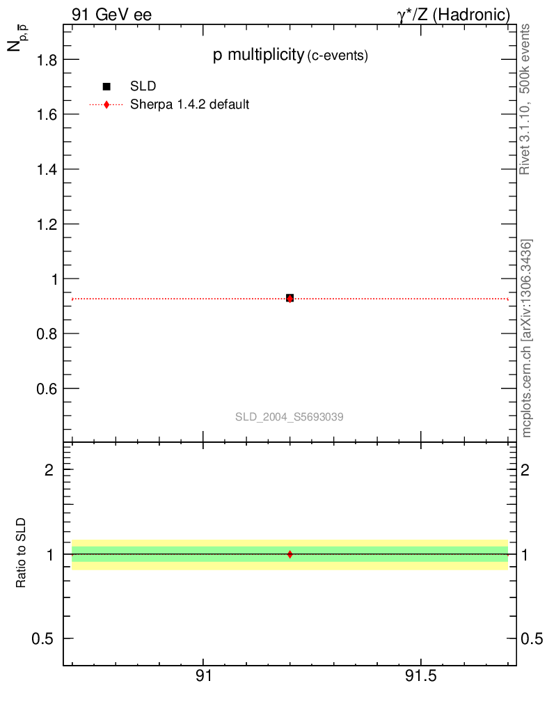 ee : γ*/Z (hadronic) : Identified Particles : p multiplicity