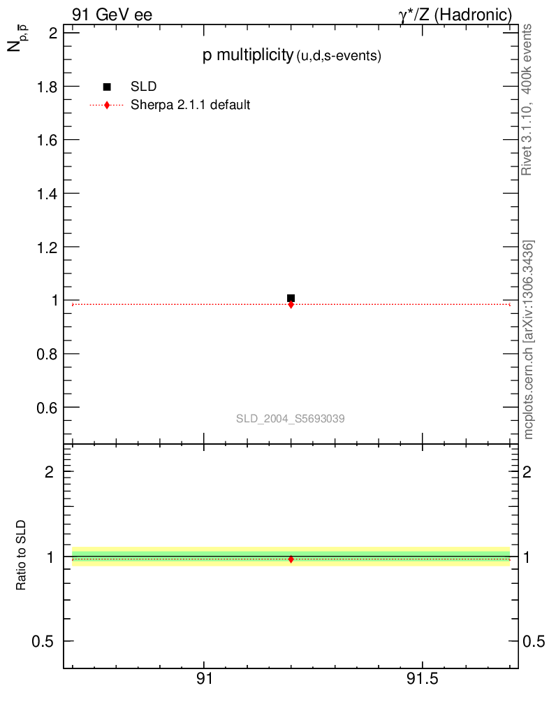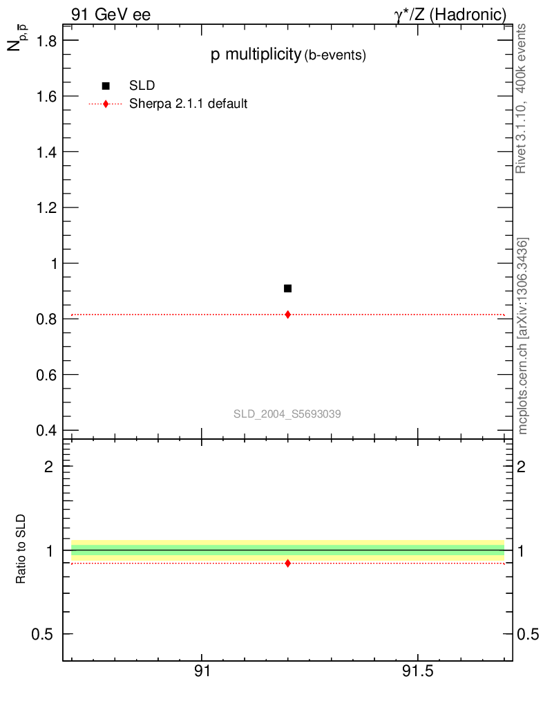 ee : γ*/Z (hadronic) : Identified Particles : p multiplicity