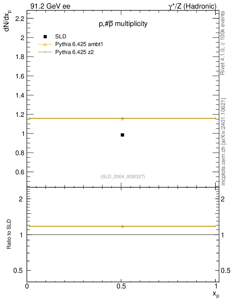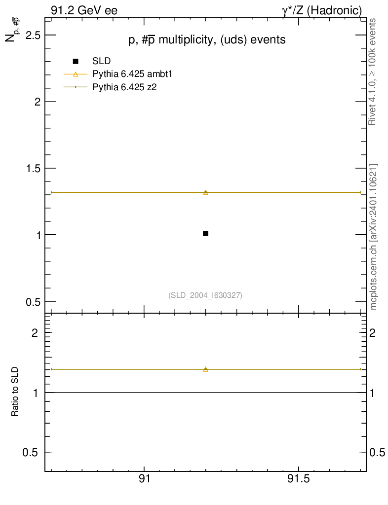 ee : γ*/Z (hadronic) : Identified Particles : p multiplicity