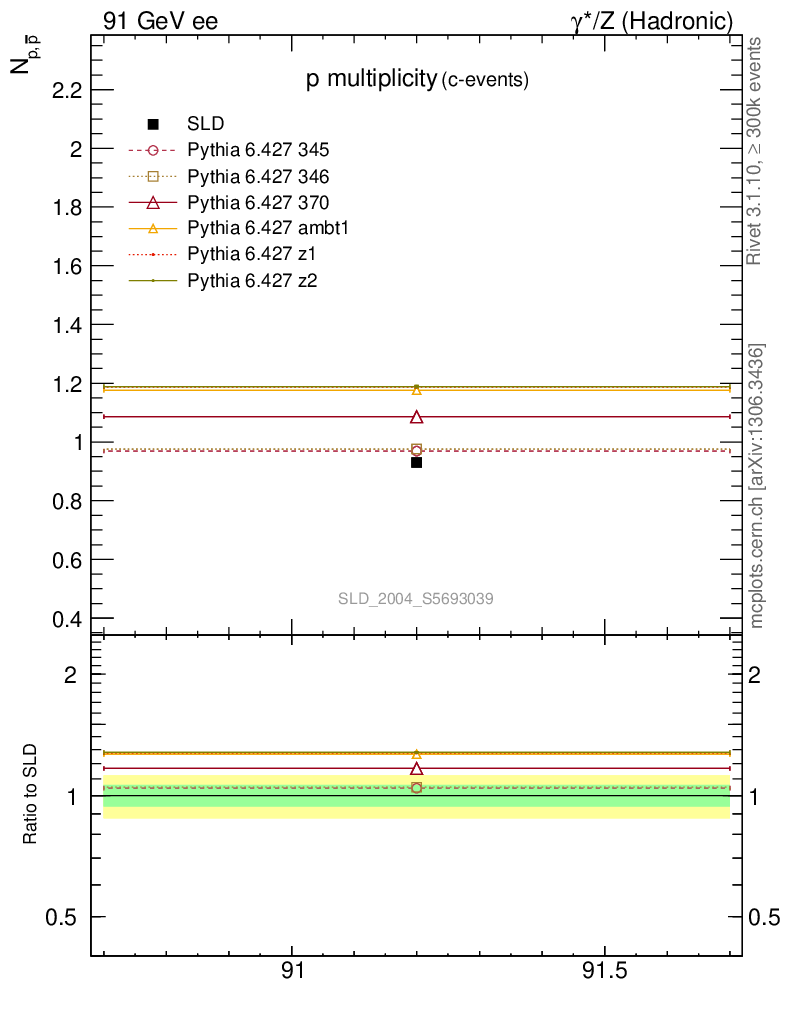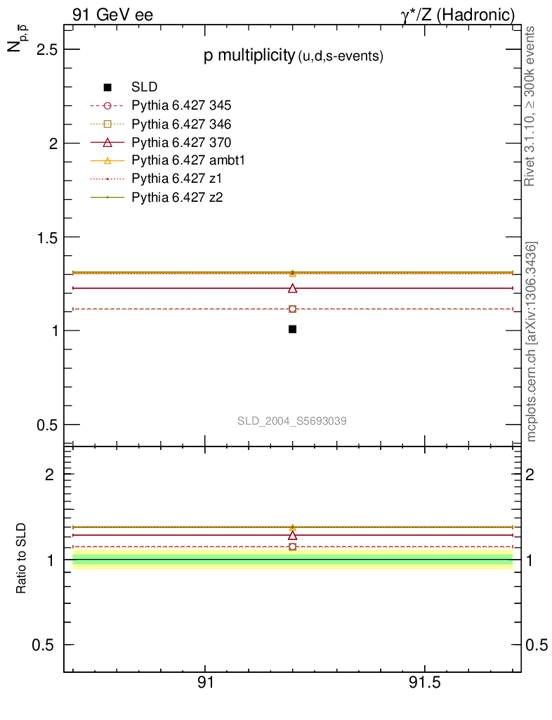 ee : γ*/Z (hadronic) : Identified Particles : p multiplicity