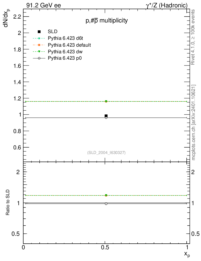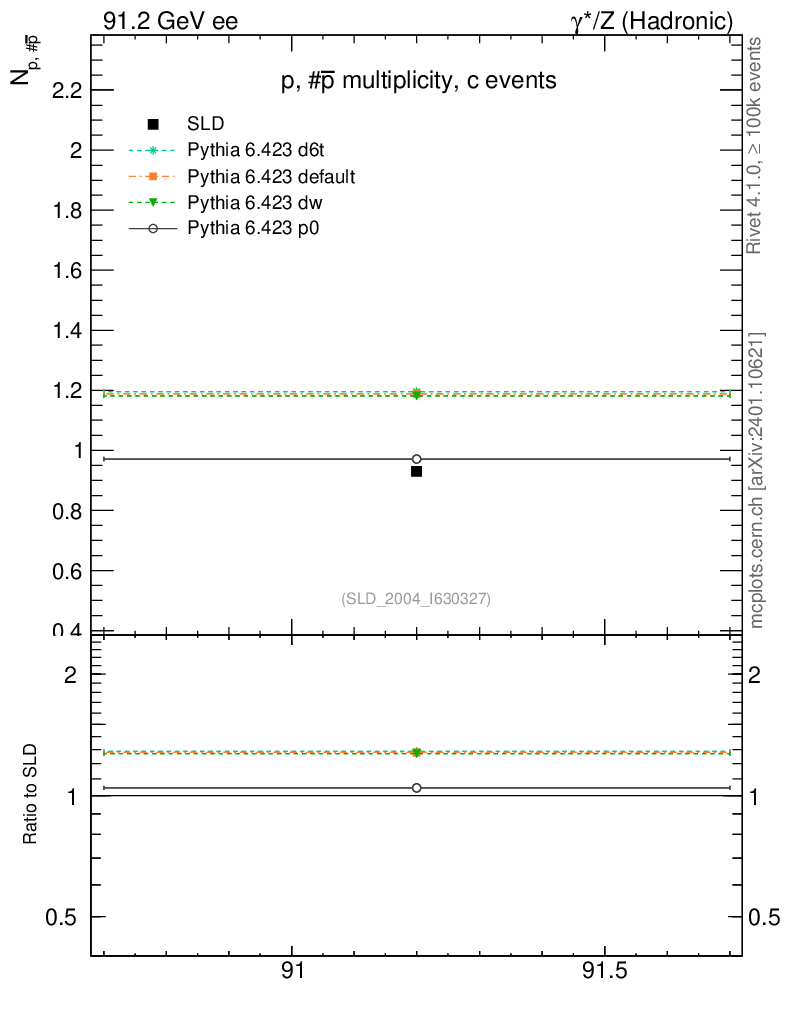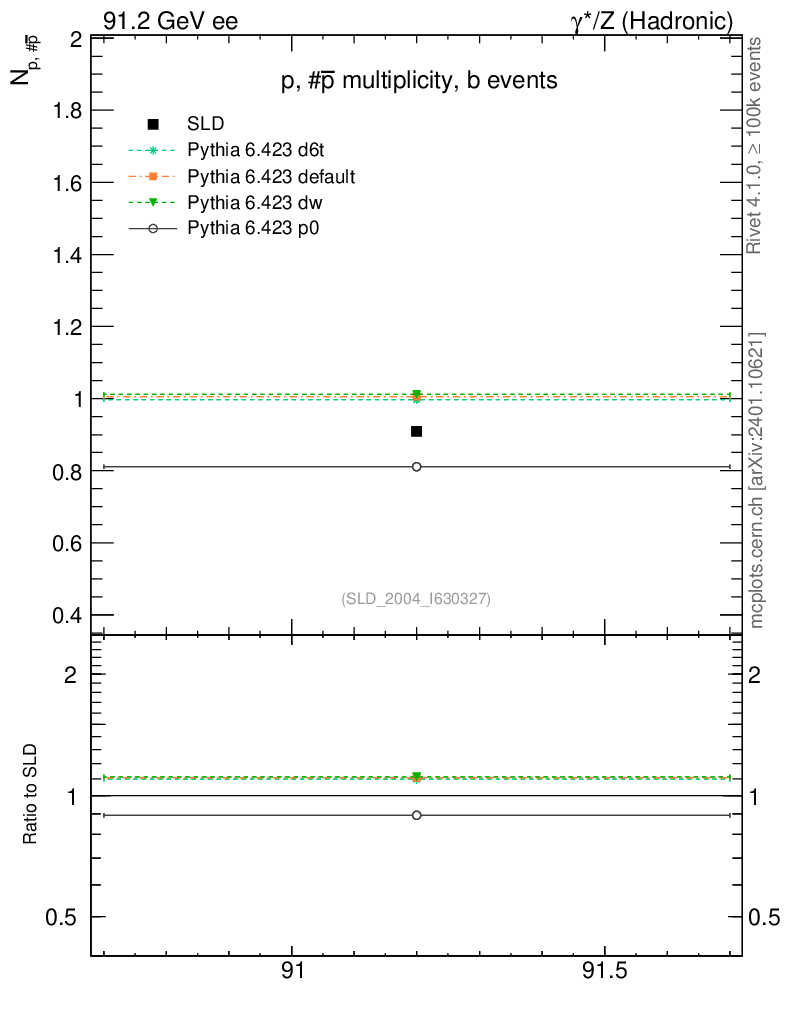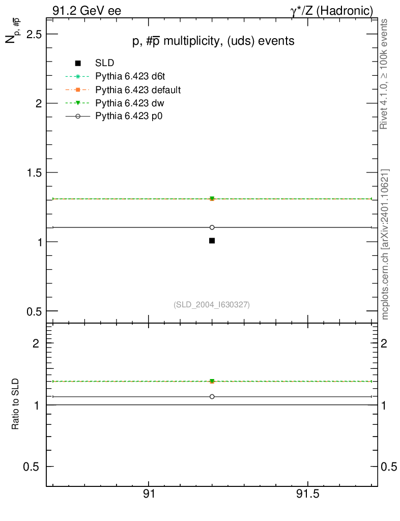 ee : γ*/Z (hadronic) : Identified Particles : p multiplicity
