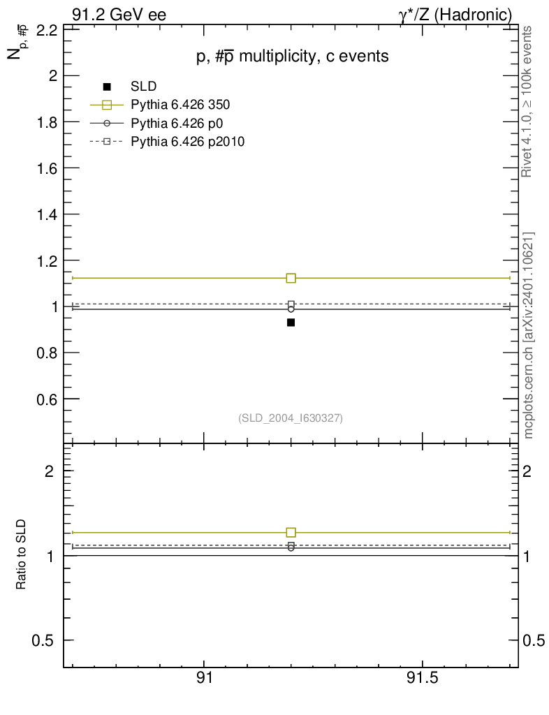 ee : γ*/Z (hadronic) : Identified Particles : p multiplicity