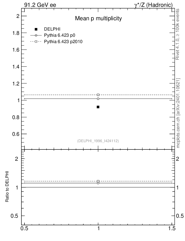 ee : γ*/Z (hadronic) : Identified Particles : p multiplicity