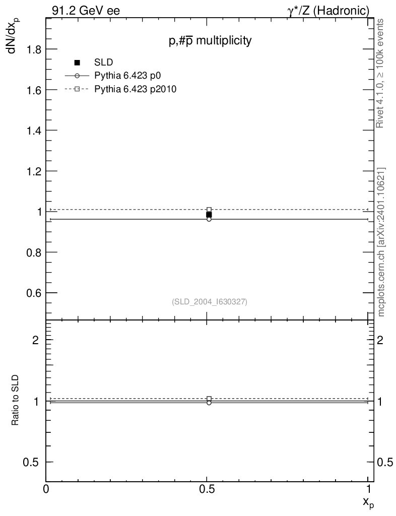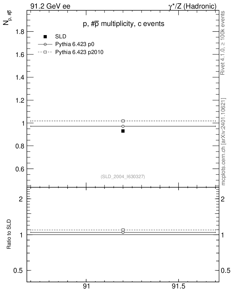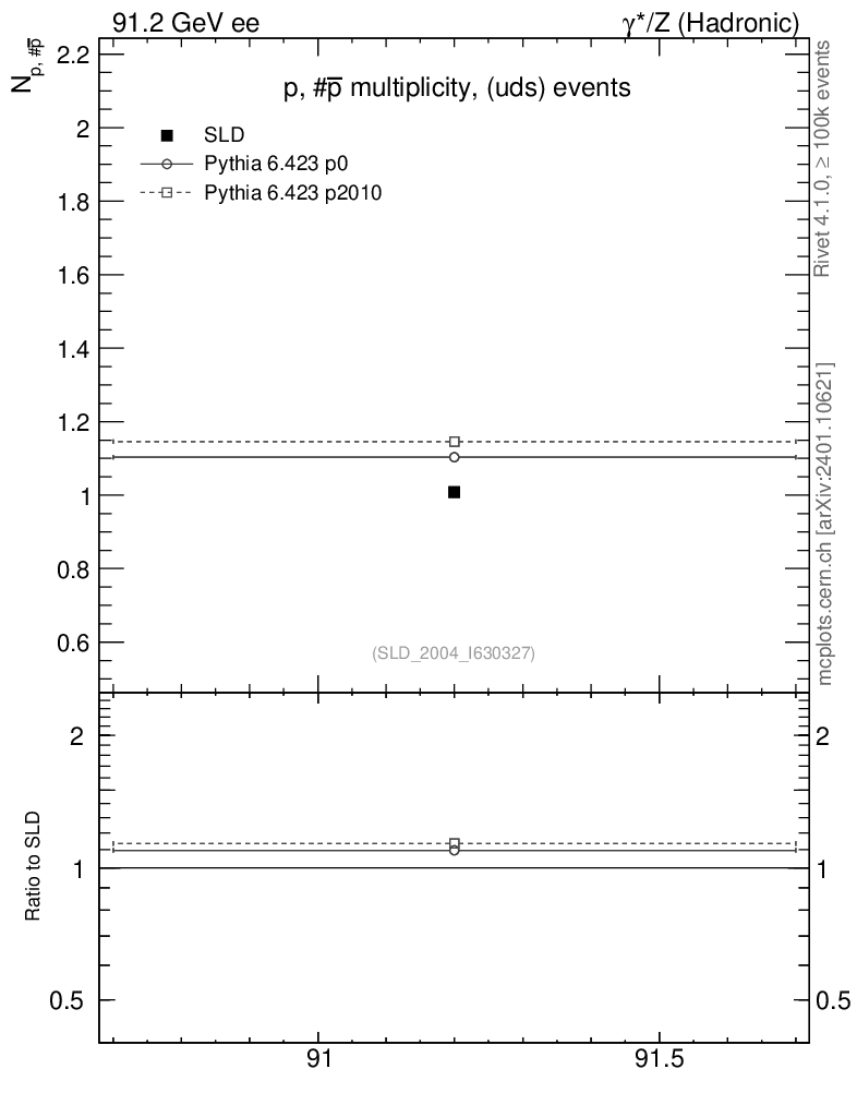 ee : γ*/Z (hadronic) : Identified Particles : p multiplicity