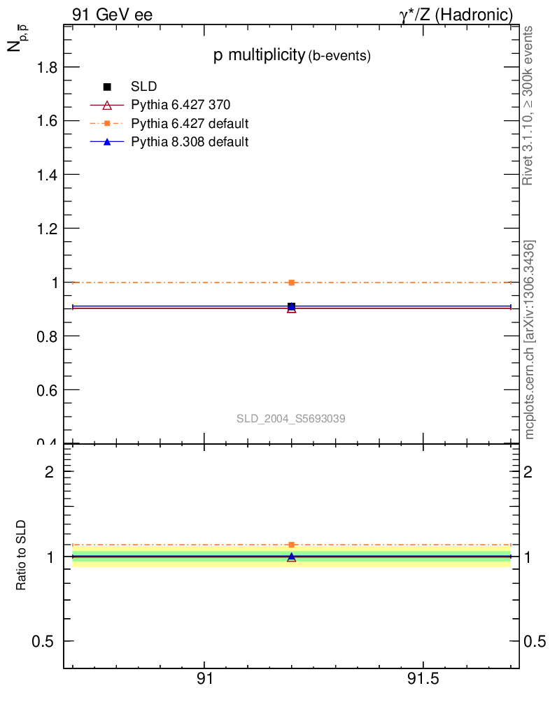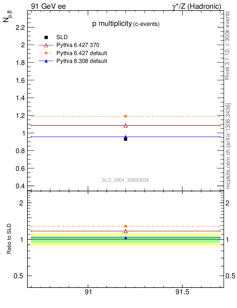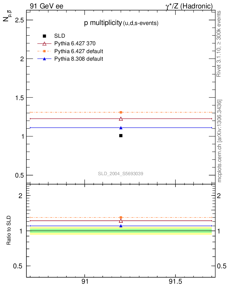 ee : γ*/Z (hadronic) : Identified Particles : p multiplicity