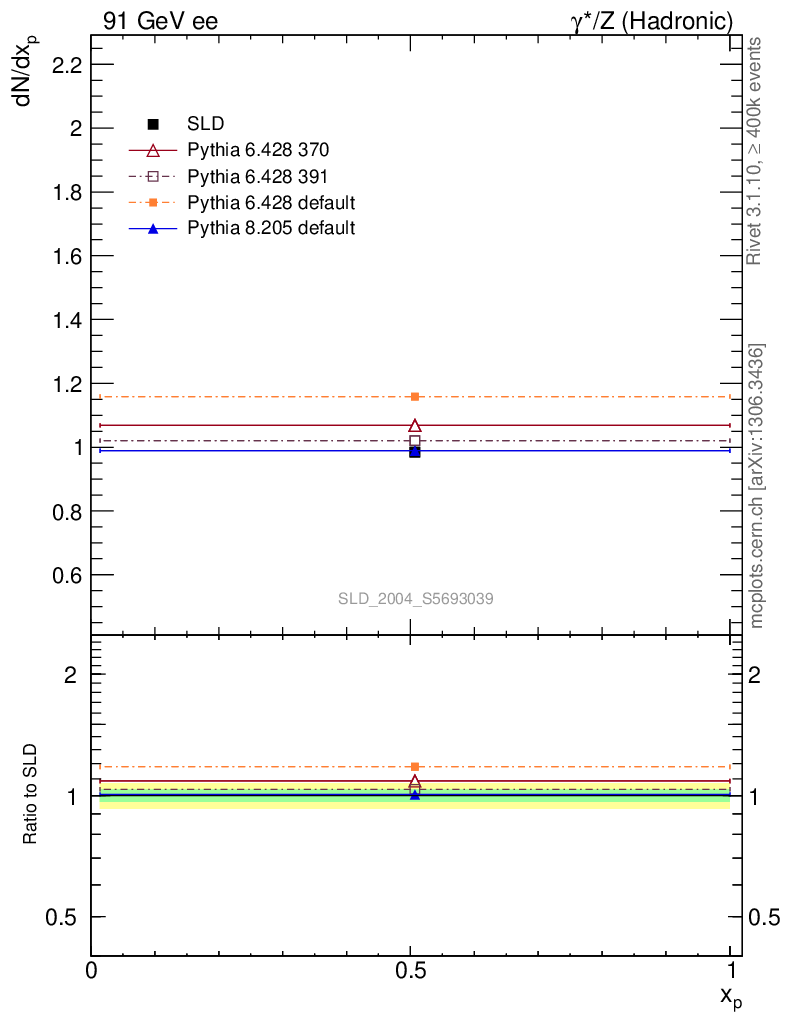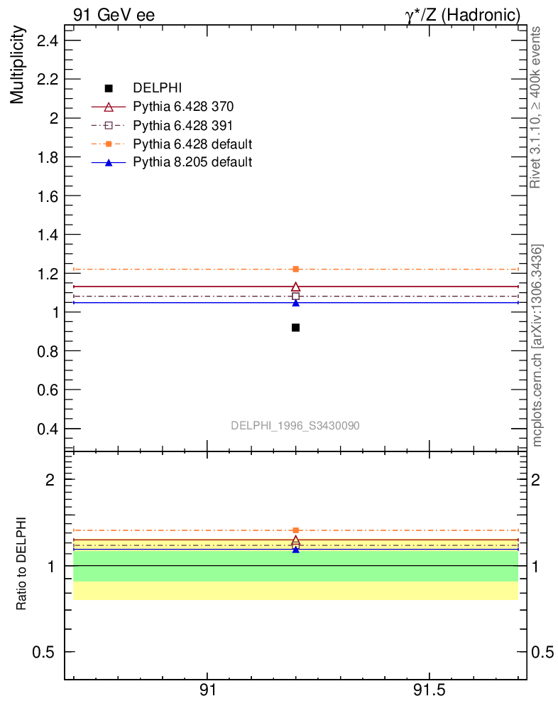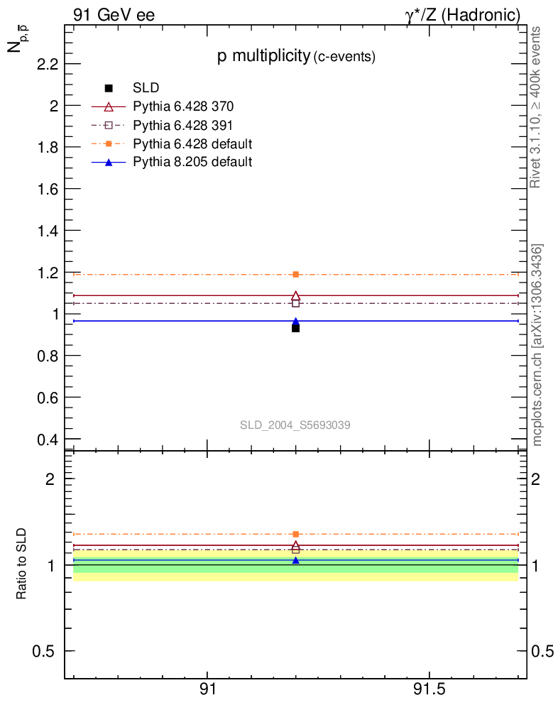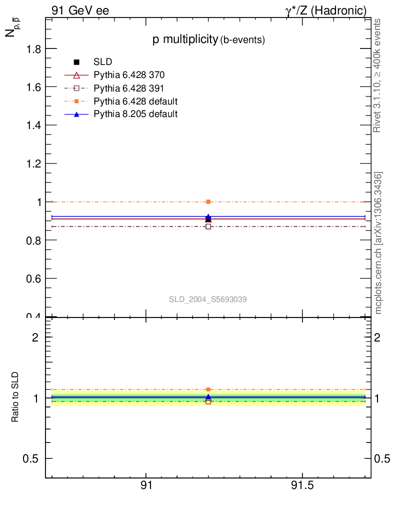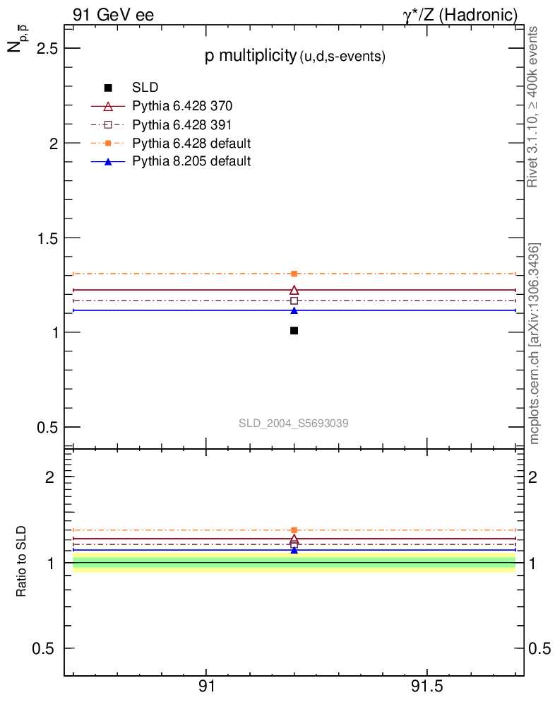 ee : γ*/Z (hadronic) : Identified Particles : p multiplicity