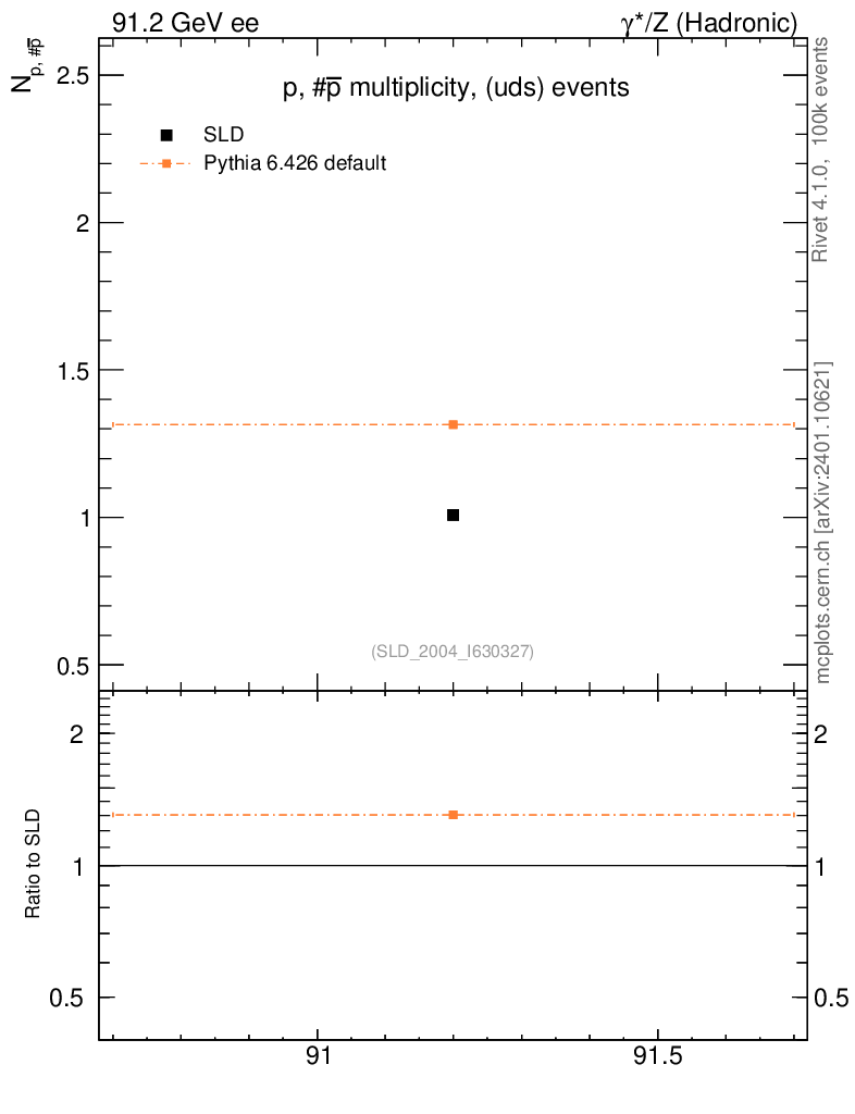 ee : γ*/Z (hadronic) : Identified Particles : p multiplicity