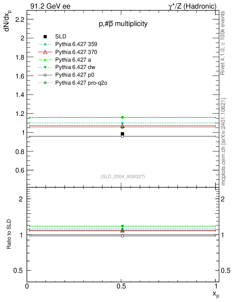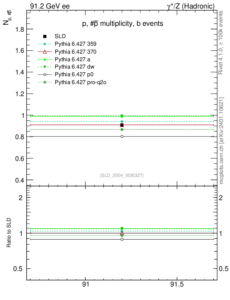 ee : γ*/Z (hadronic) : Identified Particles : p multiplicity