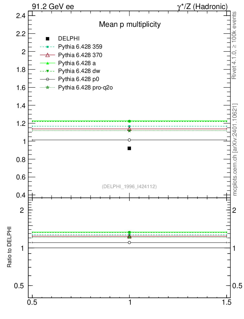 ee : γ*/Z (hadronic) : Identified Particles : p multiplicity