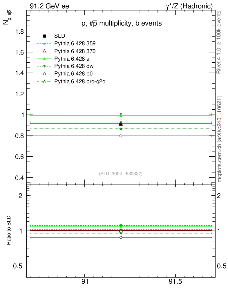 ee : γ*/Z (hadronic) : Identified Particles : p multiplicity