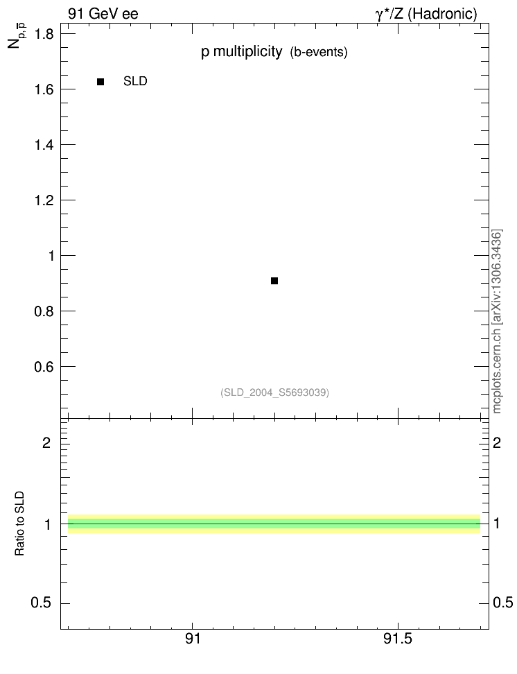 ee : γ*/Z (hadronic) : Identified Particles : p multiplicity