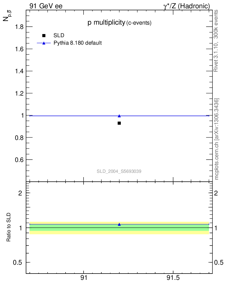 ee : γ*/Z (hadronic) : Identified Particles : p multiplicity