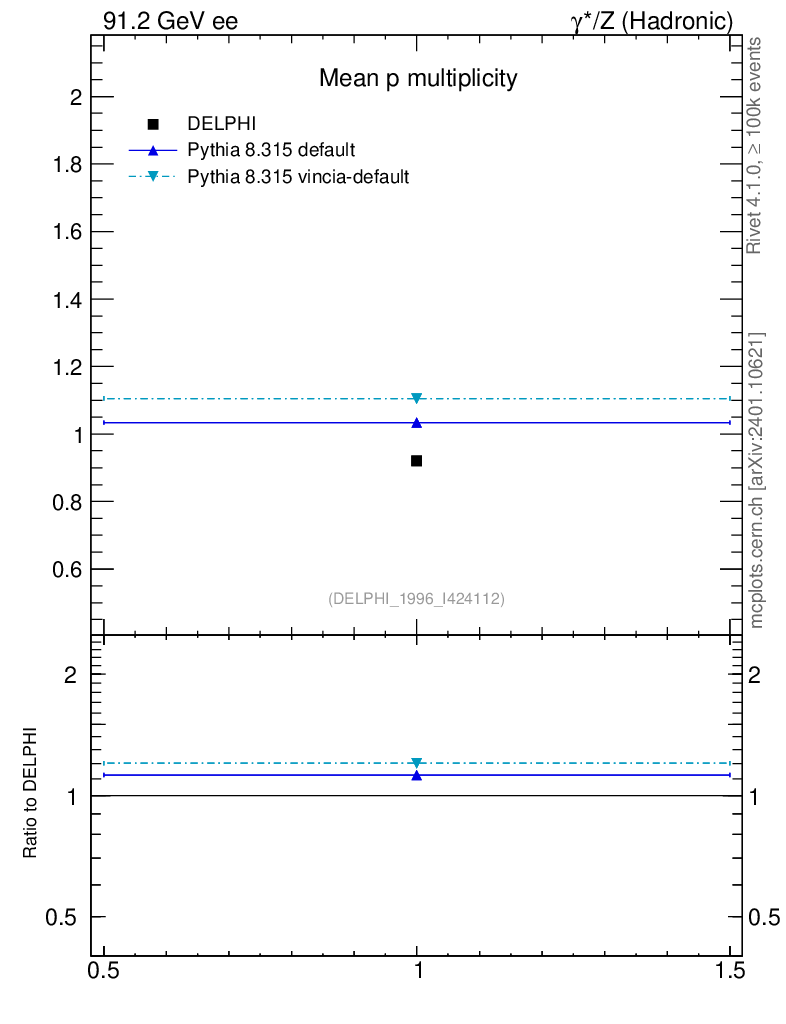 ee : γ*/Z (hadronic) : Identified Particles : p multiplicity