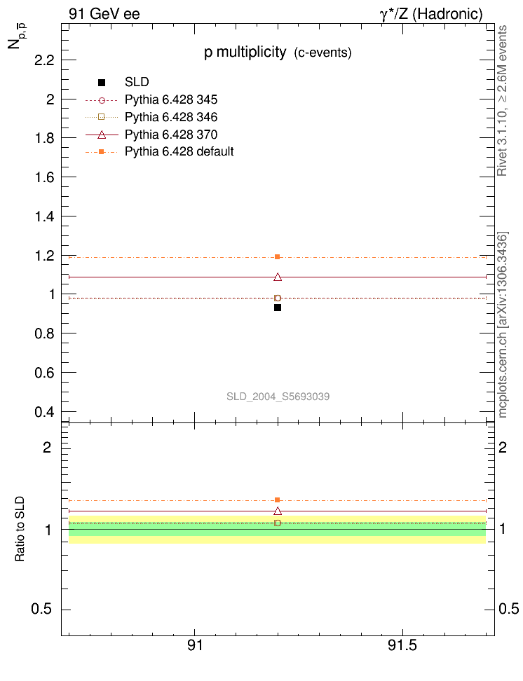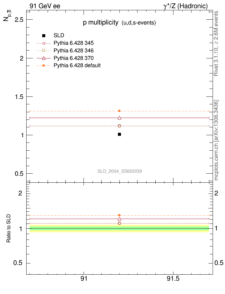 ee : γ*/Z (hadronic) : Identified Particles : p multiplicity