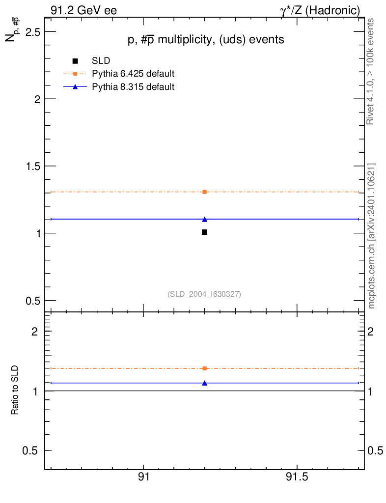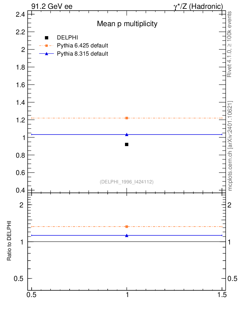 ee : γ*/Z (hadronic) : Identified Particles : p multiplicity