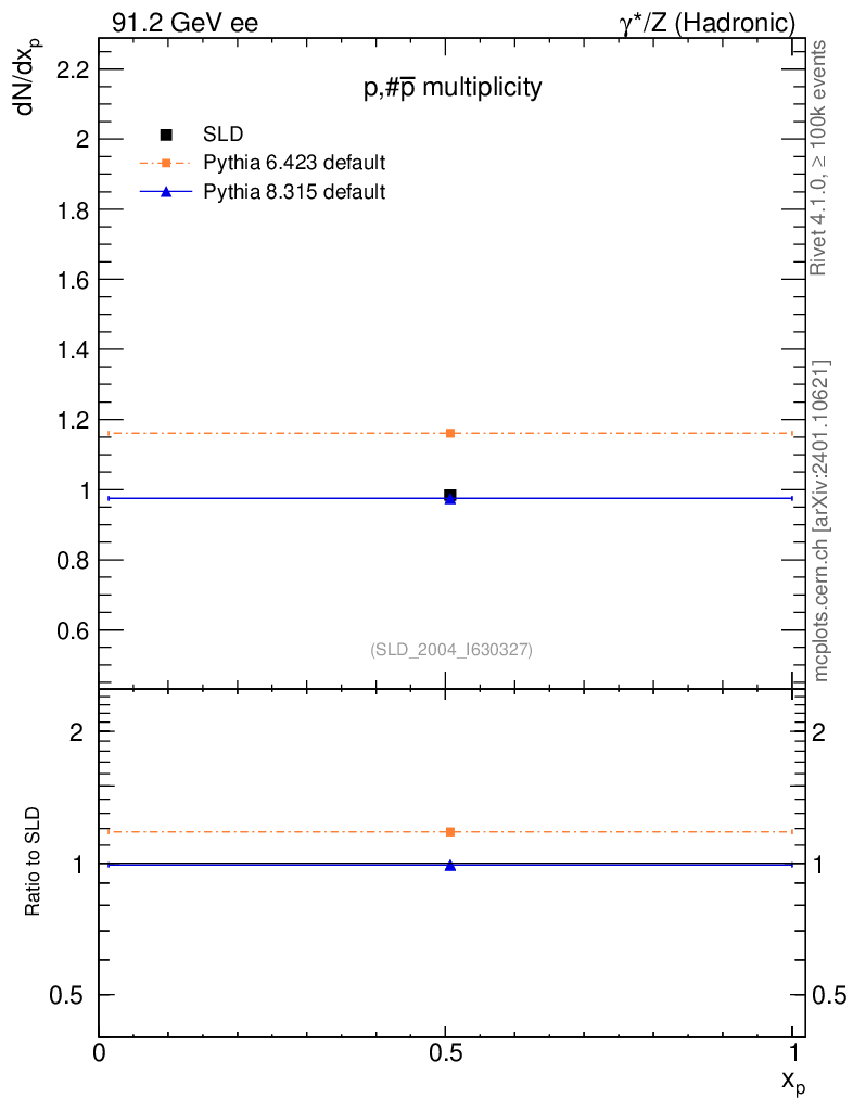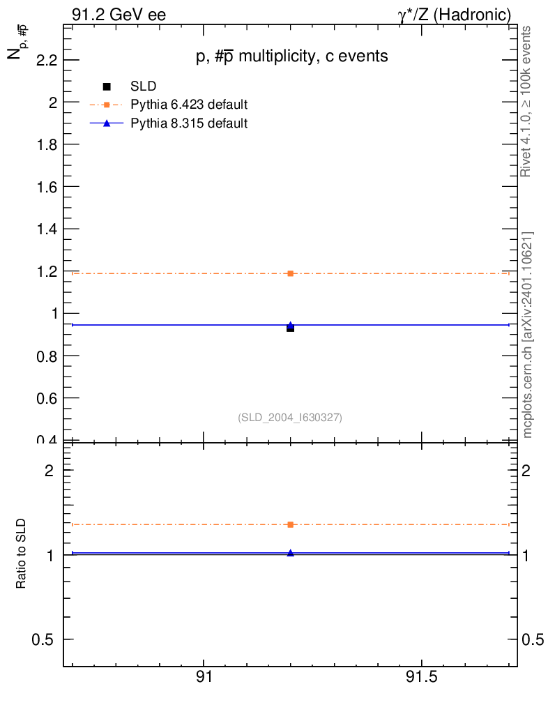 ee : γ*/Z (hadronic) : Identified Particles : p multiplicity