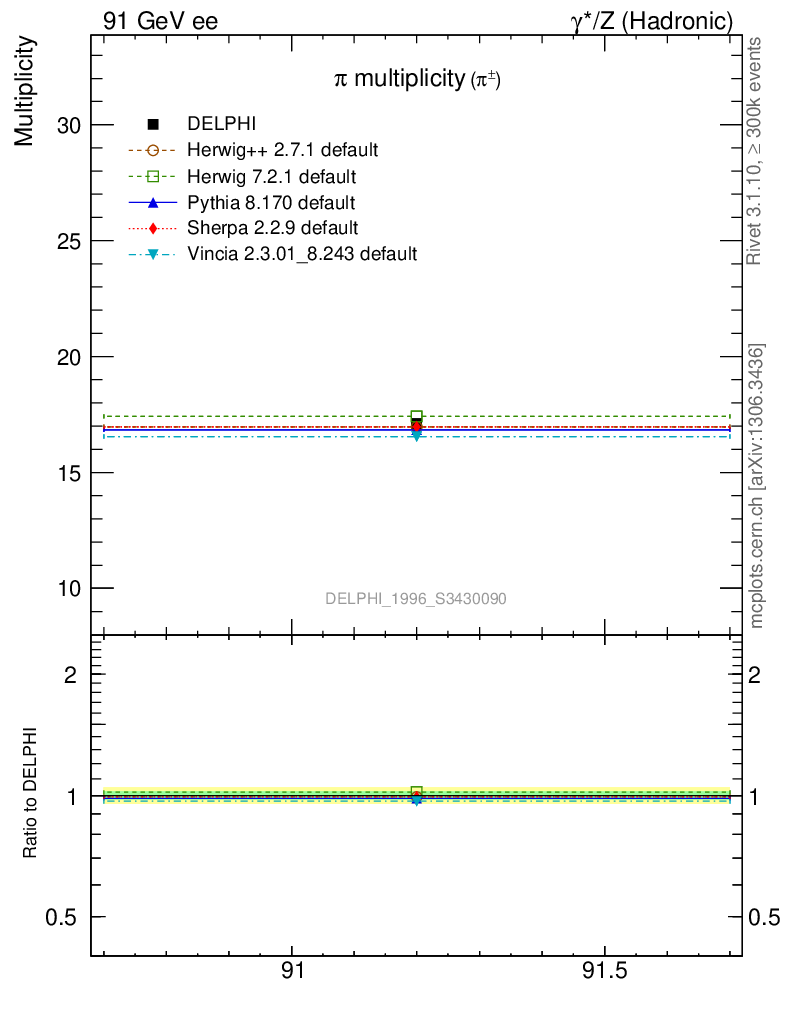 ee : γ*/Z (hadronic) : Identified Particles : π multiplicity
