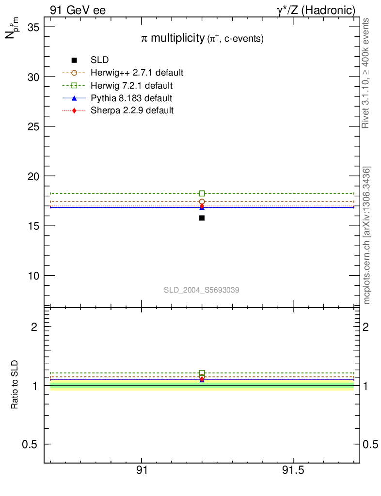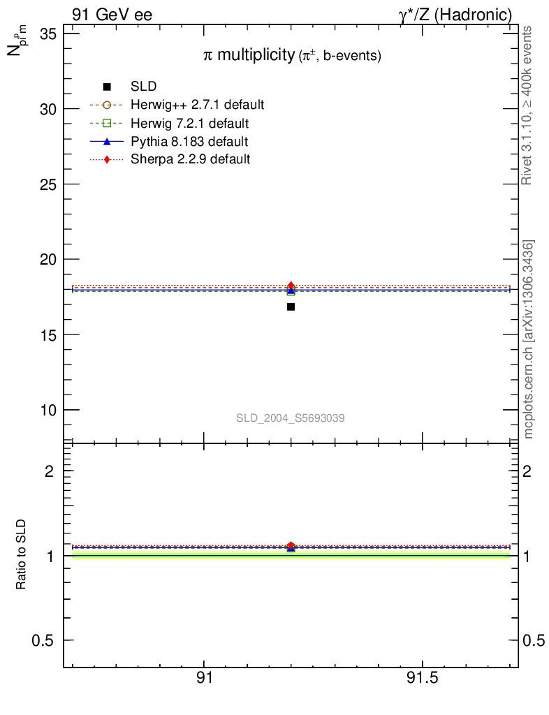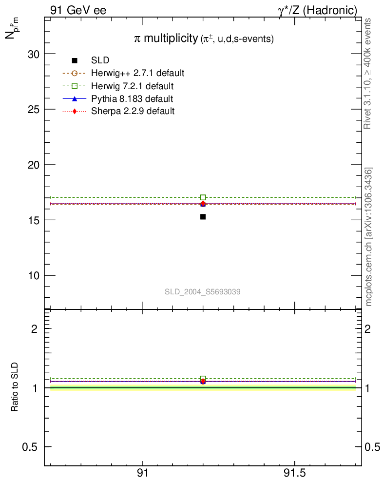 ee : γ*/Z (hadronic) : Identified Particles : π multiplicity