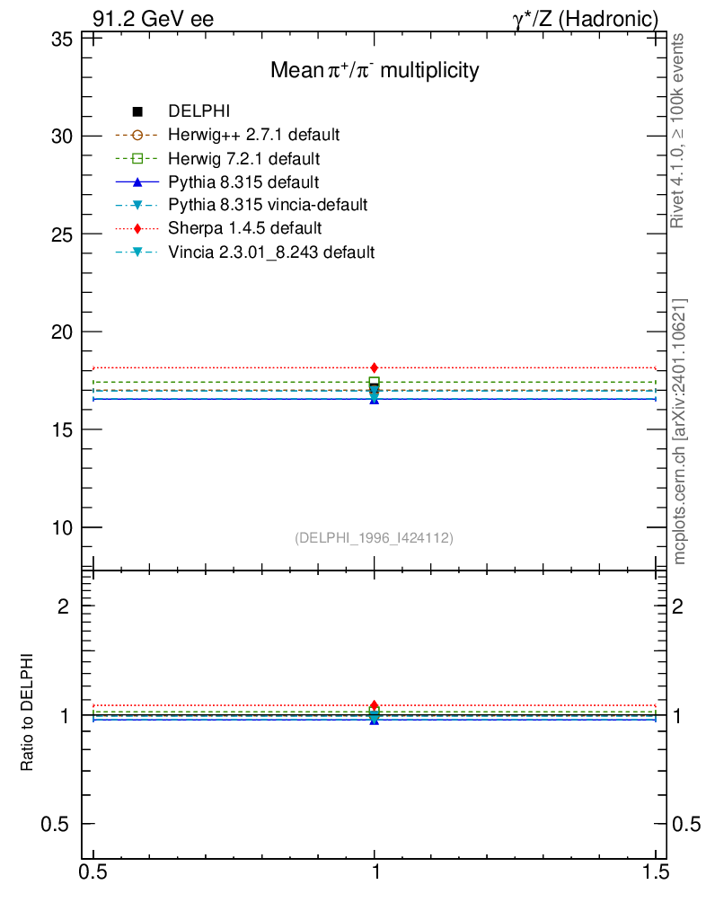 ee : γ*/Z (hadronic) : Identified Particles : π multiplicity