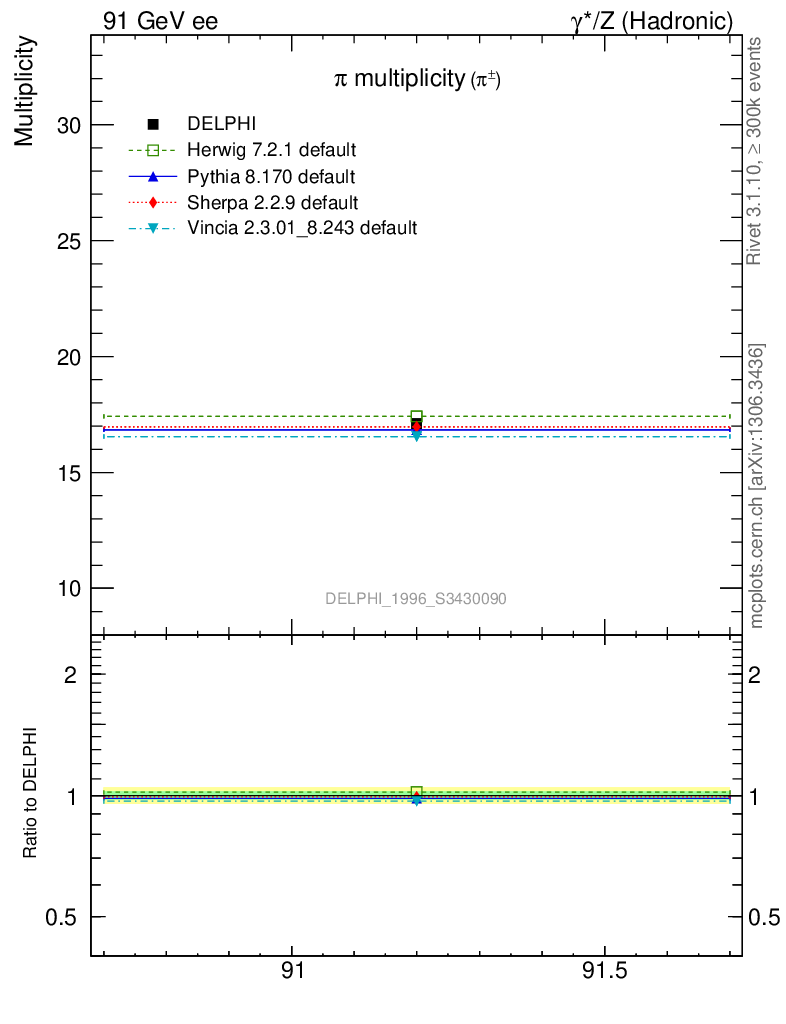 ee : γ*/Z (hadronic) : Identified Particles : π multiplicity