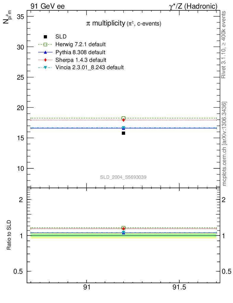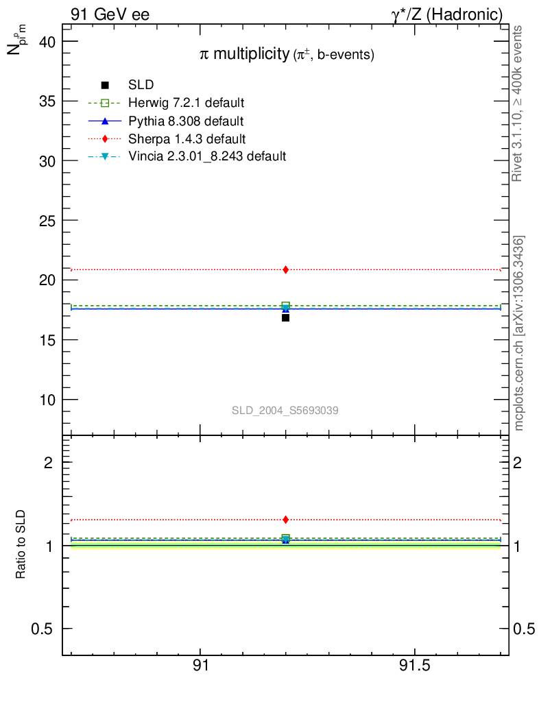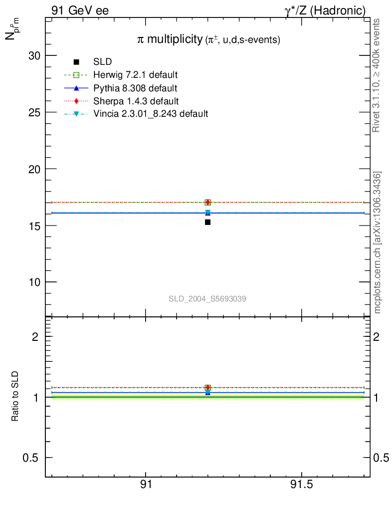ee : γ*/Z (hadronic) : Identified Particles : π multiplicity