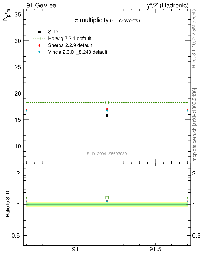 ee : γ*/Z (hadronic) : Identified Particles : π multiplicity