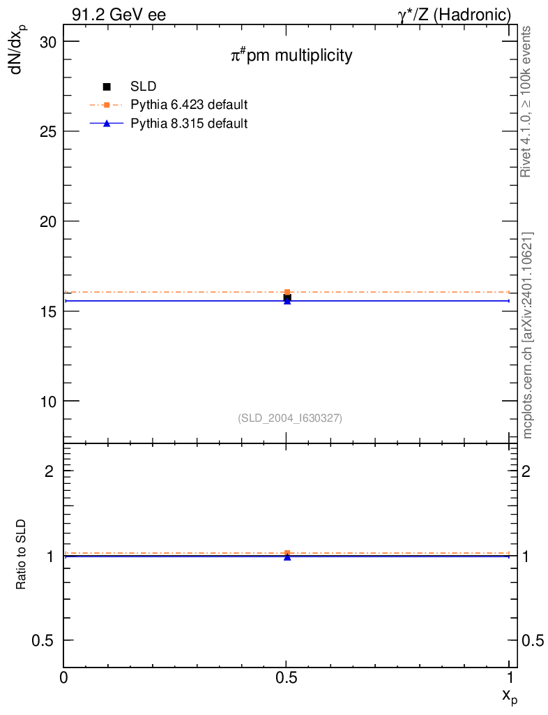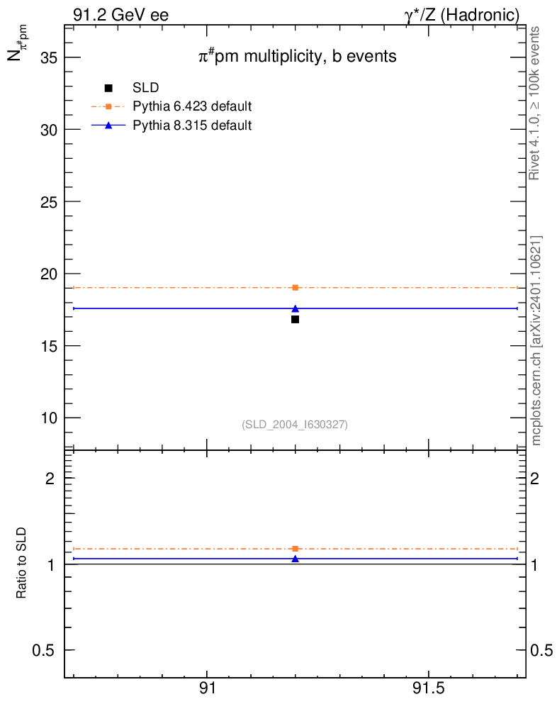 ee : γ*/Z (hadronic) : Identified Particles : π multiplicity