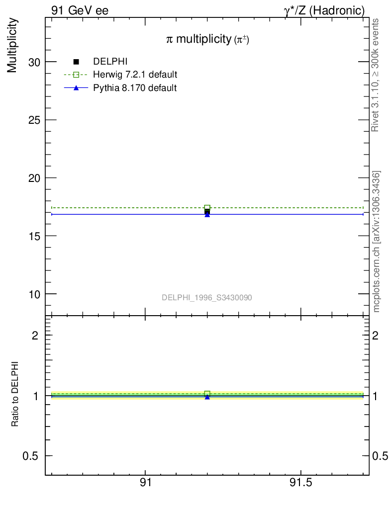 ee : γ*/Z (hadronic) : Identified Particles : π multiplicity
