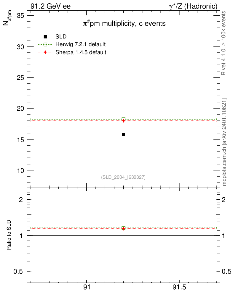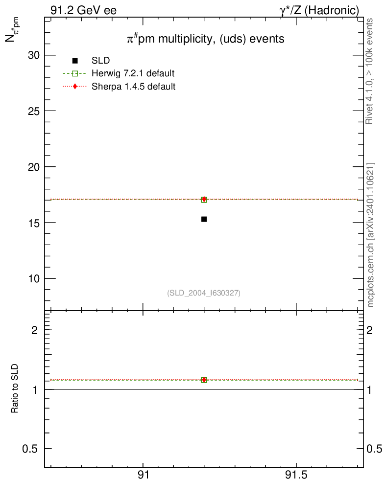 ee : γ*/Z (hadronic) : Identified Particles : π multiplicity