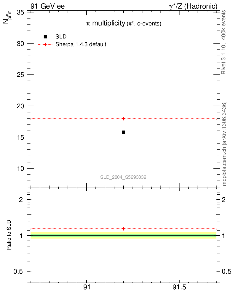 ee : γ*/Z (hadronic) : Identified Particles : π multiplicity