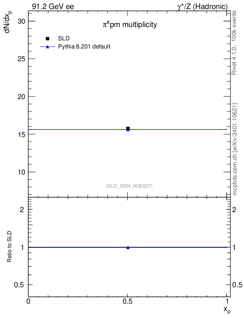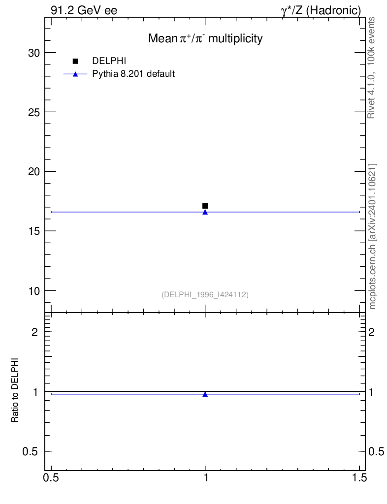 ee : γ*/Z (hadronic) : Identified Particles : π multiplicity
