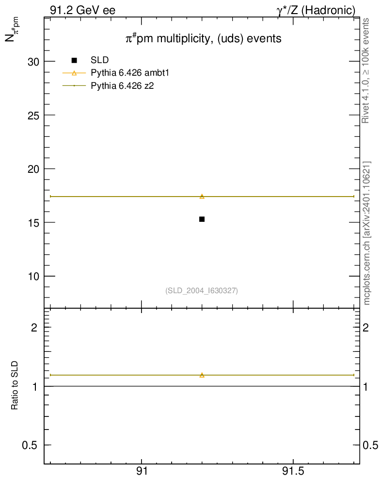 ee : γ*/Z (hadronic) : Identified Particles : π multiplicity