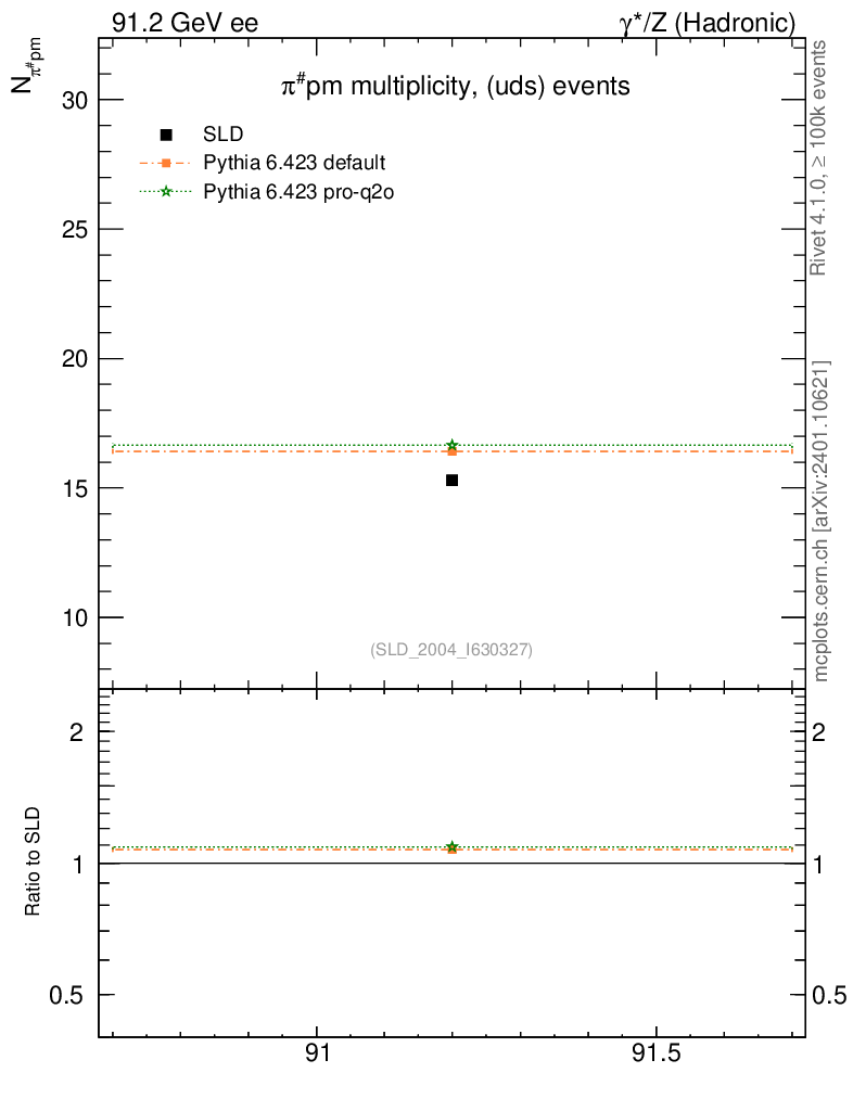 ee : γ*/Z (hadronic) : Identified Particles : π multiplicity