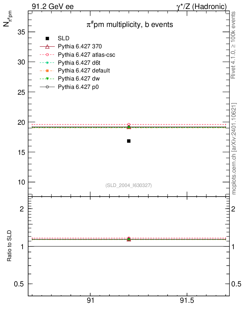 ee : γ*/Z (hadronic) : Identified Particles : π multiplicity