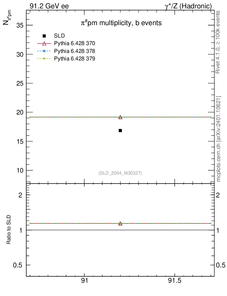 ee : γ*/Z (hadronic) : Identified Particles : π multiplicity