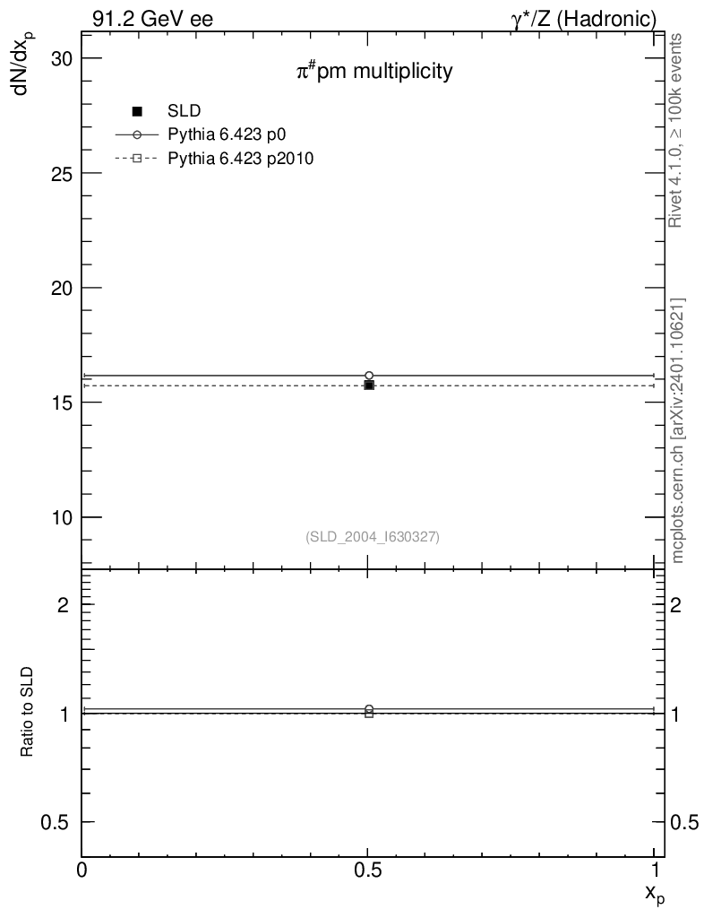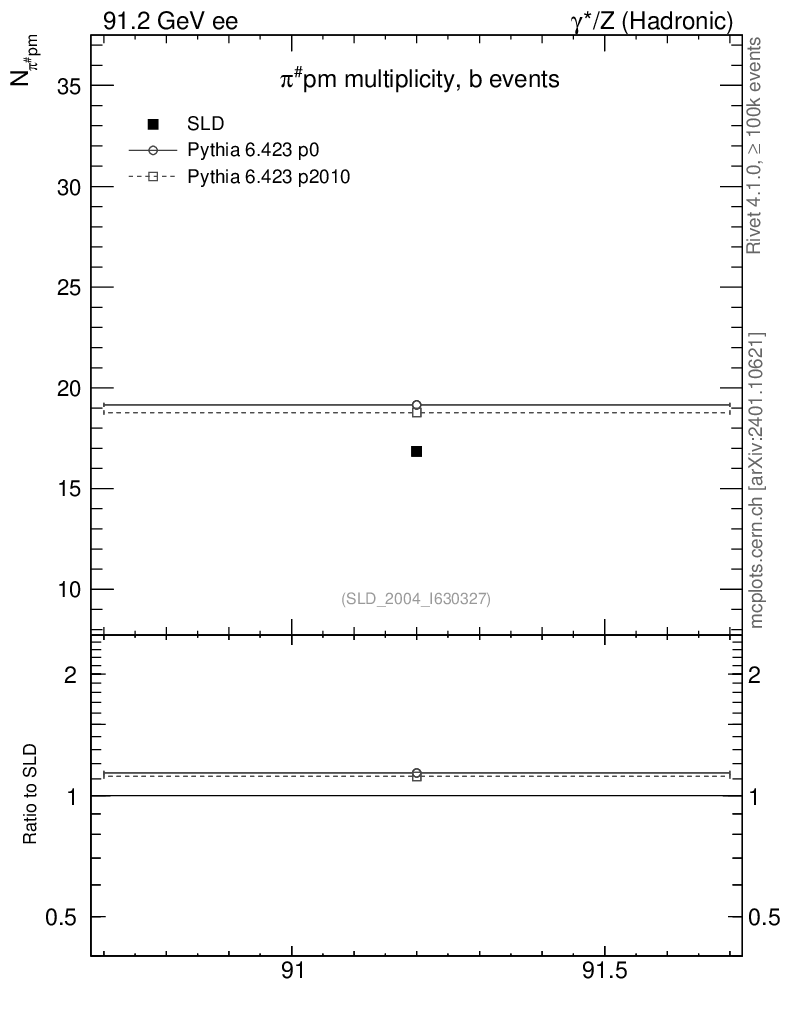 ee : γ*/Z (hadronic) : Identified Particles : π multiplicity
