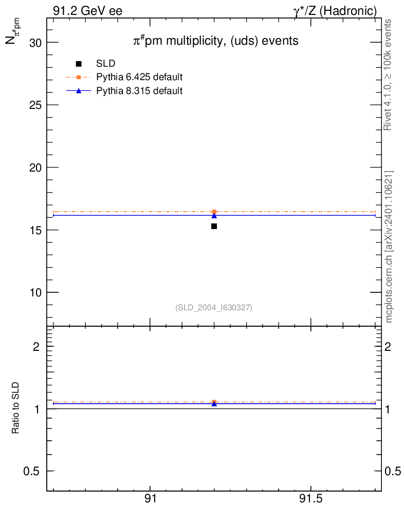 ee : γ*/Z (hadronic) : Identified Particles : π multiplicity