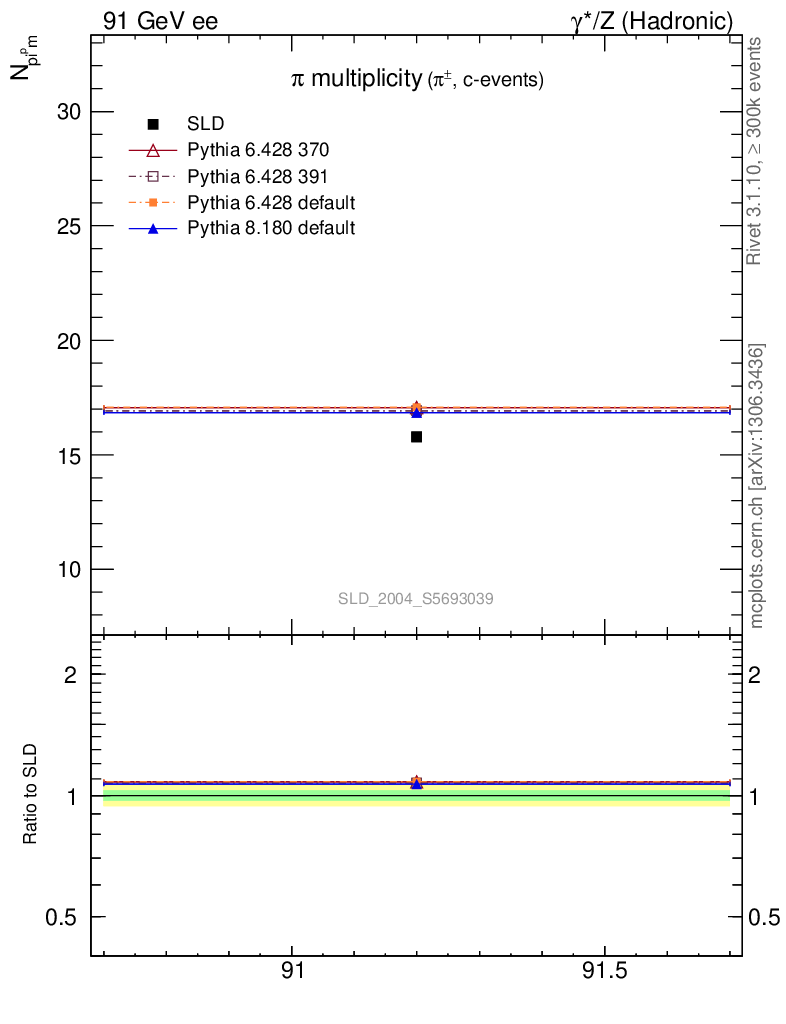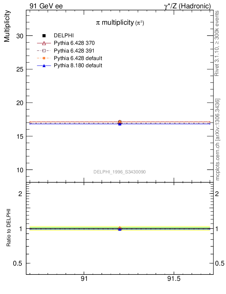 ee : γ*/Z (hadronic) : Identified Particles : π multiplicity