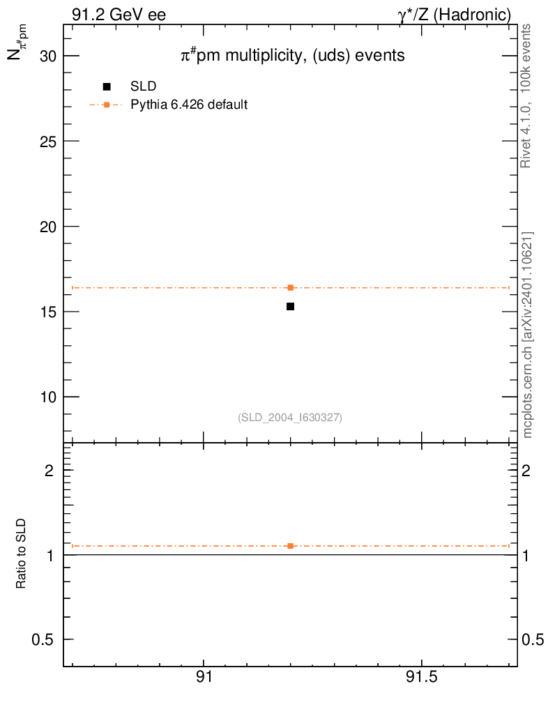ee : γ*/Z (hadronic) : Identified Particles : π multiplicity